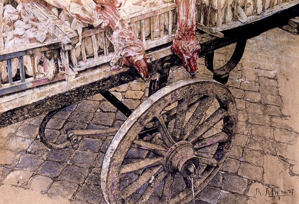 Der Marktkarren, 2007, Kohle und Farbstifte auf Packpapier, 75 x 102,5 cm