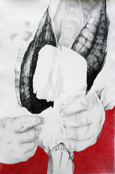 Fingerchen, 2021 Schwarzmine und Buntstift auf Papier, 120 x 80 cm